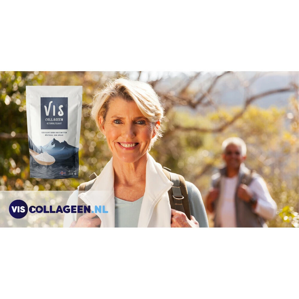 VIS Collageen Hydrolysaat PoederCollageen is een lichaamseigen eiwit dat belangrijk is voor de huid, nagels, botten, pezen en bindweefsel. VIS Collageen Hydrolysaat Poeder bevat collageen en ondersteunt huid, haren, nagels, spieren en gewrichten. Met een schepje per dag heb je je aanbevolen hoeveelheid collageen al binnen. VIS Collageen Hydrolysaat Poeder is gemakkelijk in te nemen omdat je het goed kunt mengen door de thee, sap of fruitsmoothie.Gehydrolyseerd collageen tot peptiden, voor een be