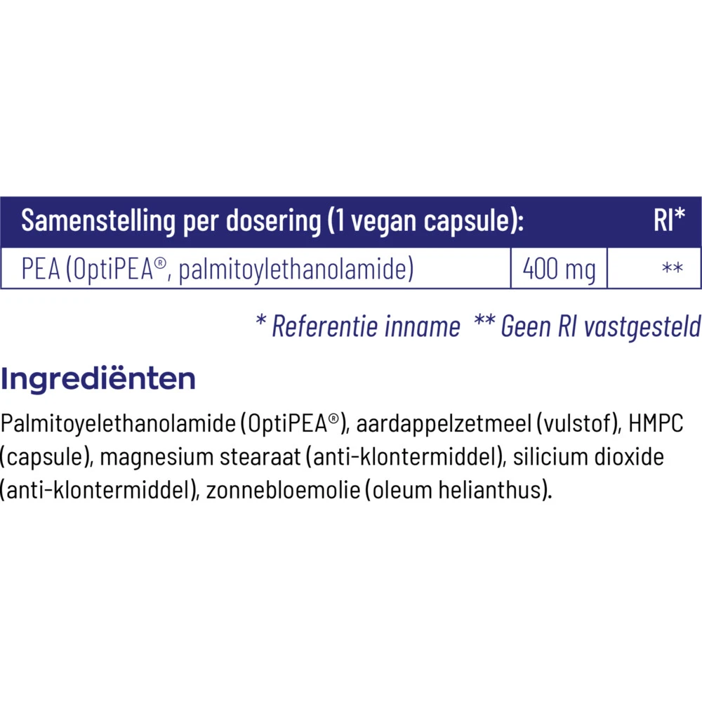 Vitakruid Pea Puur 400Vitakruid PEA Puur 400 geformuleerd met OptiPEA. Palmitoylethanolamide (PEA) is een lichaamseigen stof en wordt veelal ingezet door gezondheidsprofessionals. PEA werkt als natuurlijke stof samen met de lichaamseigen biochemie, waardoor ons welbevinden kan worden vergroot. Het ondersteunt het natuurlijk functioneren en is fysiologisch actief.Geproduceerd door het gerenommeerde Innexus NutreuticalsOptiPEA® is het enige gepatenteerde PEA extract op de Nederlandse marktUltr